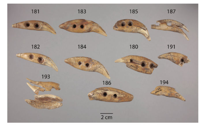 “This type of drilling would allow these teeth to be strung together by feeding a cord into one hole and out the other” leaving “an unblemished surface facing outward,” Hoard noted in his study.