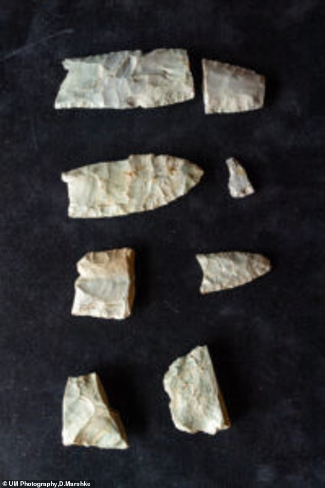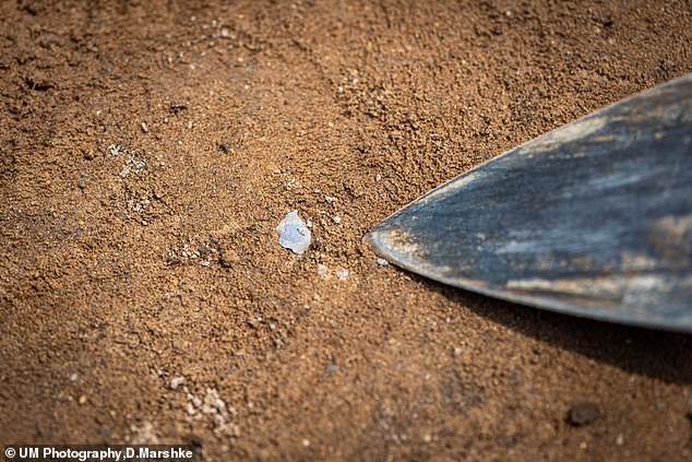The experts also uncovered ‘hundreds of pieces of manufacturing and refurbishment debris’ as well as flakes of material that show the inhabitants of the camp were making tools at the site, according to the statement.
