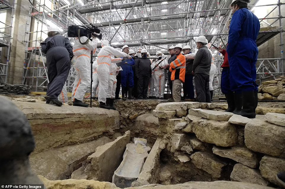 They said among the tombs was the ‘completely preserved, human-shaped sarcophagus made of lead’ for ‘a senior dignitary’ and likely dated from the 1300s — the century following the famous building’s construction.