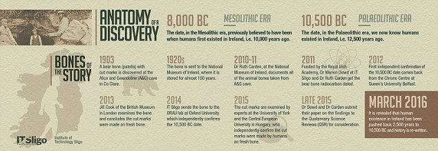 Dr Carden, who also took part in the research on the cave bear bone, said: ‘From a zoological point of view, this is very exciting, since up to now we have not factored in a possible “human-dimension” when we are studying patterns of colonisation and local extinctions of species to Ireland.