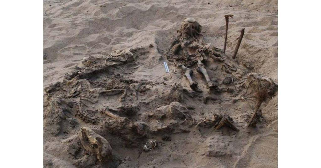 There, they unearthed the ancient remains of an eight-year-old child laid carefully across the bodies of 142 dogs.