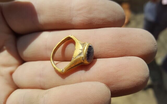 An ancient gold ring adorned with a semiprecious stone and that might have been worn as a handy cure for hangovers was recently discovered at an excavation in Yavne, in the central region of the country, the Israel Antiquities Authority said Tuesday.