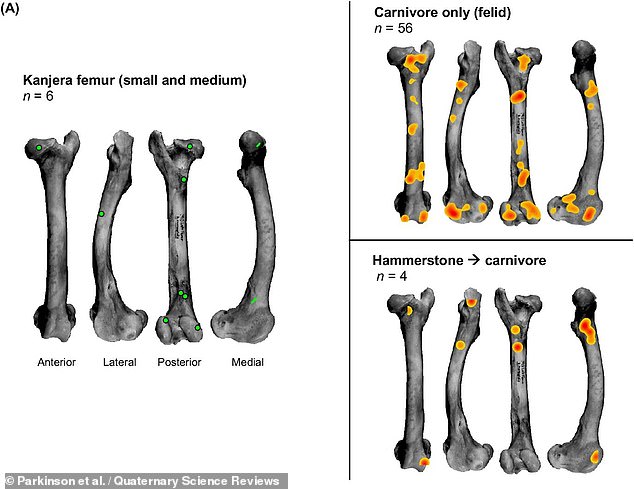 ‘Hominins were not scavenging from felid big cat kills, because they were butchering places where there would not be flesh on felid kills,’ Professor Parkinson told the New Scientist.