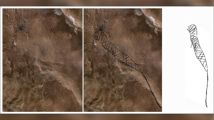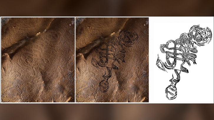 A separate figure is made of multiple twisting and curving lines and has a tail that looks like that of a rattlesnake, but the researchers “do not know what it represents.”