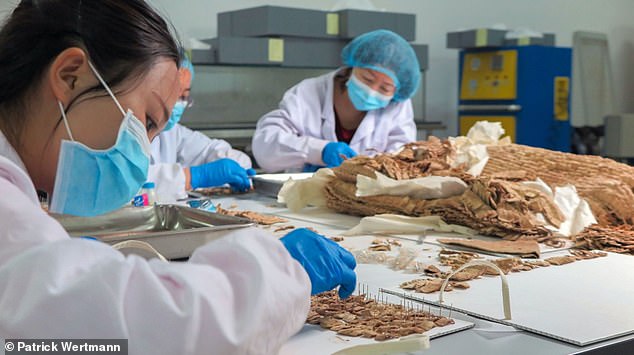 The ‘unprecedented find’ survived 2,500 years before being found in good condition thanks to Yanghai’s extremely arid climate.