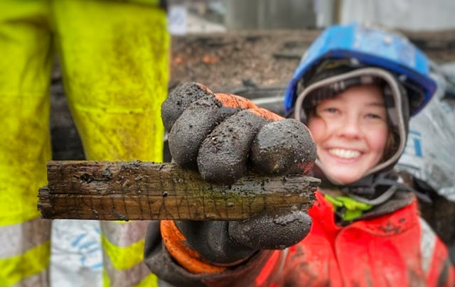 A few days after Thorkildsen’s find, Hornkjøl made a similarly exciting discovery. While standing in a deep trench prone to filling with water, she noticed a piece of wood that had washed into the ditch. Like the recently recovered bone, the stick bore runes dated to the medieval era.