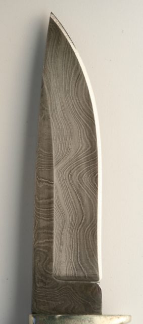 A simple way to recognize a genuine Damascus blade is its distinctive patterns of banding and mottling that resemble flowing water. The term Damascus blade refers to both swords made in Damascus and for those that have the typical patterns yet were produced elsewhere.
